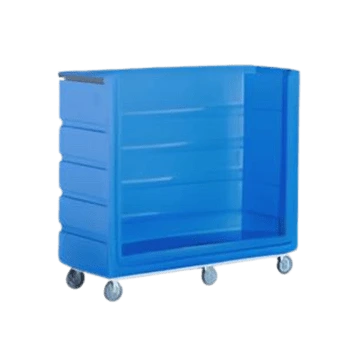 This extra heavy-duty washroom truck, similar in look to the Maxi-Utility Truck, can be positioned directly below the wash wheel for rapid unloading. The unique recessed bottom allows for complete drainage of water and increased capacity.